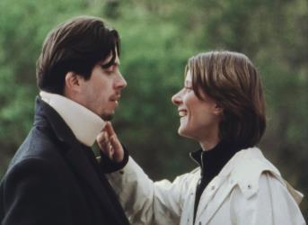 Peter (Dirk R. Heidinger) mit Halskrause trifft seine Freundin Anna (Petra Staschill) im Park.