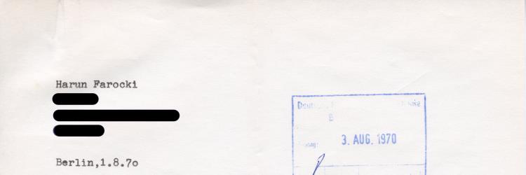 Brief von Harun Farocki an Dr. Heinz Rathsack