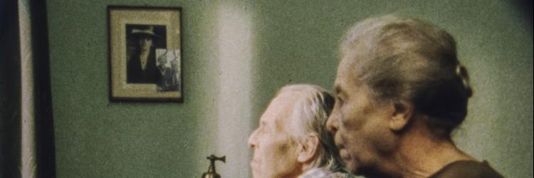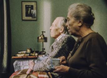 Ein altes Ehepaar (Ernest Berk, Lotte Loebinger) schaut wartend aus dem Fenster.