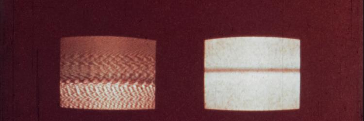 Vier Fernseher pulsieren zu unterschiedlichen Trommelrhythmen. Nacheinander schalten sie sich ein und werden eins.