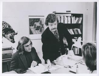 wdr/WESTDEUTSCHES FERNSEHEN Deutsche Film- und Fernseh-Akademie Berlin: Persönlich sind wir uns nähergekommen Spielfilm, Westberlin 1973 Regie und Buch: Wolfgang Tumler Sdg.: Montag, 10.9.1973, 22.05 Uhr Bild: Hans-Werner Bussinger (rechts) und Thomas Harder Programm - Informationen 37/73 Foto honorarfrei - Fotovermerk: WDRIn einer Rundfunkanstalt wird über ein kritisches Gedicht diskutiert.