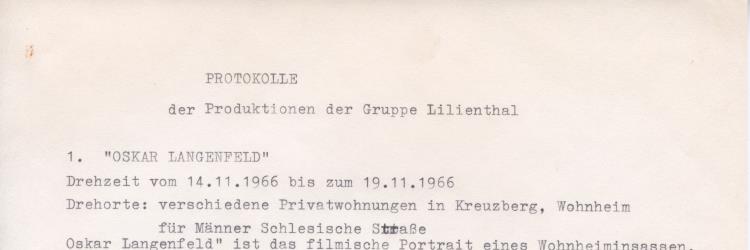 Protokoll von Holger Meins zu OSKAR LANGENFELD. 12 MAL
