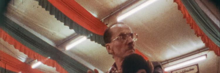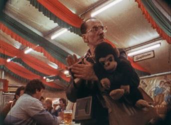 Der 70–jährige Bildreporter Horst Binder zieht mit einem Stoffaffen und einer Polaroidkamera auf’s Zeltfest in Neukölln.