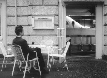 Thomas Schulz’ ZWISCHEN GEBÄUDEN (1989) ist ein Spiel mit dem Eingespielten. Ein Film, der mit Frontalität, Aussetzung, Stilllegung und ohne lineare Struktur funktioniert. Vorgefundene Stadträume, die ihren Originalton behalten, werden mit Fiktion besetzt, indem die Akteure fragmentarisch aus "Der Räuber" (1972) von Robert Walser zitieren.