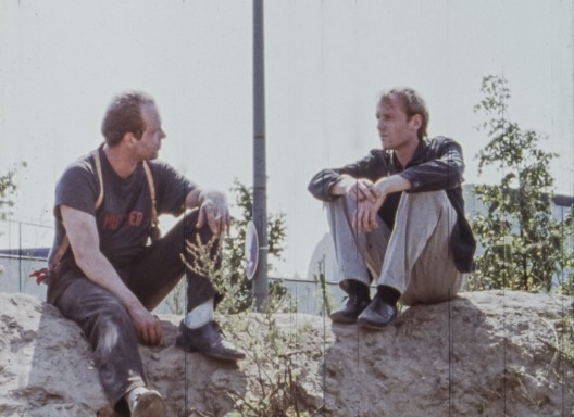 OSTWÄRTS von 1991 ist aus dem Seminar bei Peter Nestler entstanden. Er sagte: „Komm, wir fahren jetzt raus und gucken uns den Osten an. Ihr sitzt hier in Berlin, ihr habt hier Kameras und alles, Produktionsmittel. Und wir müssen jetzt mal gucken. Mich interessiert das selber.“ Wir sind Richtung Polen gefahren, dann zum Schiffshebewerk Niederfinow, haben uns jüdische Friedhöfe angeschaut, die schon direkt nach 1989 sofort beschmiert waren. Nestler hat uns das alles gezeigt. Das hat mich sehr begeistert. Einmal sagte er: „Was wir hier vor uns haben, ist Postkommunismus. Jetzt ist die Treuhand da. Jetzt wird hier die Arbeitswelt zerlegt. Diese Leute wissen noch gar nicht, was auf sie zukommt. Sie werden keine Arbeit mehr haben, sie werden in Gegenden leben, in denen es keine Produktion mehr gibt. Das werden alles sterbende Städte werden.“ Und das konnten wir sehen.