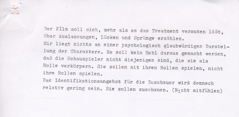 In den Filmen vorher hatte ich wenig mit Dialog gearbeitet. IM SOMMER war dann ein Versuch, ein Nachdenken darüber, wie ich Leute in Filmen sprechen lassen will, sprechen lassen könnte. Ein Einfluss dabei waren sicherlich die frühen Filme von Rainer Werner Fassbinder, und das zitierende Sprechen bei Jean-Marie Straub und Danièle Huillet, das dem klassischen Schauspielrealismus zuwiderläuft und sich bewusst davon abgrenzt. In den Arbeiten nach der Akademie versuchte ich, dass in eine andere Richtung zu modifizieren, sich ganz dem zu öffnen, was ich vorfinde.