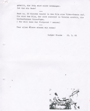 Bei einem früheren Filmprojekt von mir, das dann tatsächlich nicht zustande kam, hat sie mir kurz vor Drehbeginn als Darstellerin abgesagt, weil sie fand, dass das so ein Kinderkram sei und sie sich nicht mit so einem Quatsch beschäftigen darf. Aber CANNAE fand sie dann doch toll: „Eine ganz neue Methode“, „dass man so Drehbücher schreiben kann“. Das war ja eine dieser Fragen damals: Soll man überhaupt ein Drehbuch schreiben? Ist das nicht antiquiert? Diese Überlegungen kamen aus dem Gedanken von Godard, dass ein Drehbuch nur dazu da ist, um Buchhaltung zu führen – sozusagen der Einschusskanal der Betriebswirtschaft in die Filmkunst; und dass man stattdessen aus dem, was man dreht, entwickeln muss, was man als Nächstes dreht. Und nicht das macht, was im Buch steht.