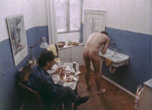 Später habe ich an CHRONIK DES REGENS geschnitten und Wolfgang saß im Schneideraum nebenan mit NAVY CUT. Uns ging es beiden nicht gut dabei. Ich war gerädert, vormittags arbeitete ich in der Kinemathek, nachmittags im Schneideraum. Und im anderen Schneideraum saß Reinhold Vorschneider, der seinen Abschlussfilm schnitt, eine Geschichte nach Georges Bataille, der aber nie fertiggestellt wurde.