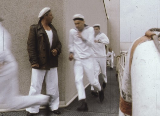 Und es gab auch noch eine Vorführung bei einem Redakteurstreffen an der dffb. Der damalige scheidende Direktor Thomas Koebner hatte den Film kurzfristig an das Ende dieses Treffens verlegt, um einen eigenen Favoriten zu protegieren und weil für gewöhnlich zum Schluss der Veranstaltung keine Redakteure mehr anwesend waren. Reinhard Hauff, der neue Direktor, war damals gerade erst neu an die Akademie gekommen und wollte bei diesem Redakteurstreffen eigentlich gar nicht bleiben. Hauff war dann aber von NAVY CUT gefesselt. Er blieb da stehen und hat danach vor den Redakteuren eine Zehn-Minuten-Rede gehalten: Was das bedeutet, so einen Film zu machen. Die Erzählung wäre ihm nichts, aber mit solch einfachen Mitteln so eine Welt herzustellen, hatte ihn sichtlich beeindruckt. Wenn zum Beispiel am Ende das Schiff brennt – das ist ja nur ein Gasbrenner im Vordergrund, und im Hintergrund sind die Schauspieler. Im Bild sieht das dann so aus, als ständen sie im Feuer. Das ist zwar schon tausendmal gemacht worden im Kino, aber wenn du davorstehst, musst du eben auch darauf kommen. Von solchen Sachen ist der Film ja voll: mit irgendwelchen Lösungen und Übersetzungen für irgendetwas.