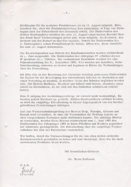 Am 27. November 1968 werden die Kündigungsschreiben verschickt. Die Dozenten sprechen Rathsack in einem Brief vom 13. Dezember 1968 schließlich das Vertrauen aus, während sie Leiser das Misstrauen aussprechen. Sie sehen in Leiser den Hauptverantwortlichen für die „unglückliche Entwicklung der Akademie“16 und die Eskalation der Situation. Wahrscheinlich trägt dieser Schritt entscheidend dazu bei, dass Leiser zum 1. April 1969 aus der dffb ausscheidet. Rathsack ist fortan alleiniger Direktor der dffb.