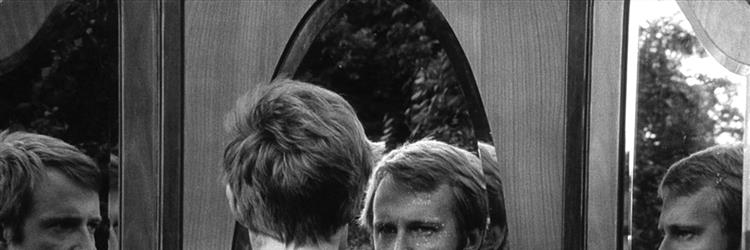 Ein junger Mann (Hans-Peter Korff) betrachtet sich selbst in den Spiegeln eines Wandschranks.