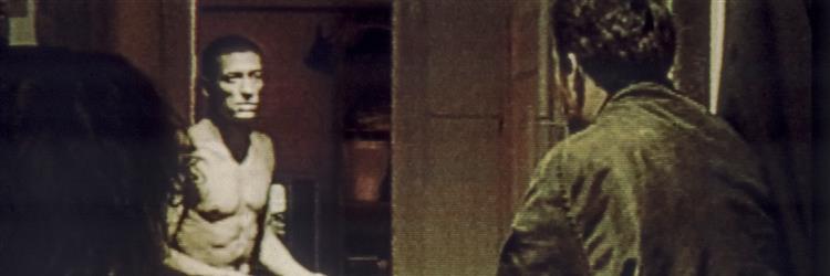 Valerij (Valerij Fedorenko) erwischt Ljuba (Sanja Spengler) mit einem anderen Mann und bedroht ihn mit einer Pistole.