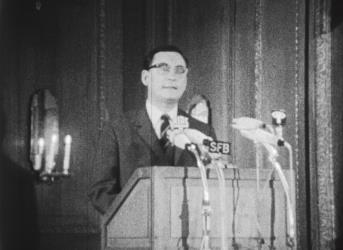 Klaus Schütz hält die Eröffnungsrede beim "Kunstpreis Berlin" 1969.