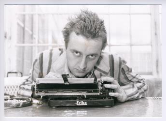 DORADO (ONE WAY) Ein Film von Reinhard Münster DORADO (ONE WAY) ist vor allem eine schöne Kino-Komödie und eine weltbekannte Dreiecksgeschichte: Rolf liebt Rita, Rita liebt Rolf. Aber Rita erwartet ein Kind - von Frank. Rold ist sauer. Rita haut ab. Frank fährt mit Rolf nach Süden und damit beginnt eine Abenteuergeschichte: Rolf soll für Bredow moderne Kunst nach Cannes fahren. Aber die Kunst ist voller Koks und das schneeweiße Pulver riecht nach Erpressung. Bawolski kommt ins Spiel, schießt und gewinnt. Rolf kommt mit dem Kind davon.... Unser Foto zeigt Dominik Bender. Foto: FUTURA FILM, , Keller: Film 7 14/7 B 66,1% 0,06 1.75 Breite 90mm 59mm 51,5%Lukas (Dominik Bender) hinter der Schreibmaschine.